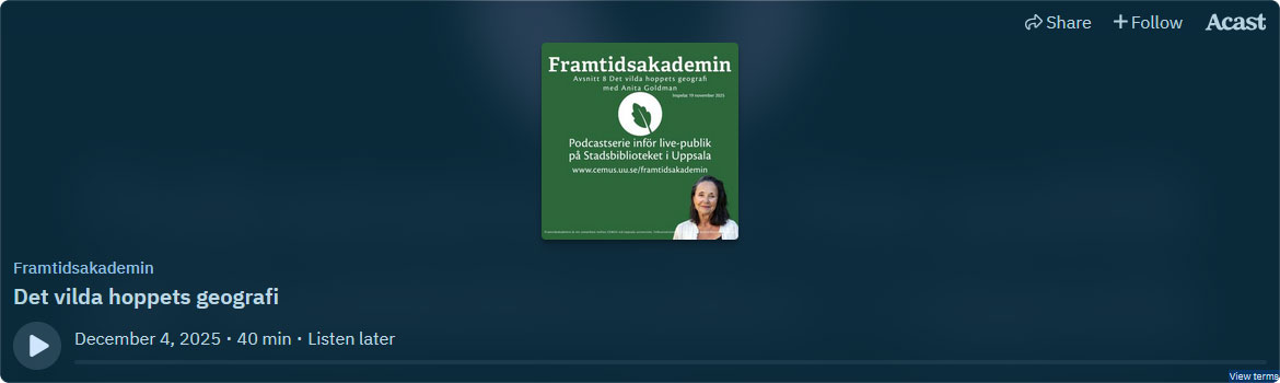 Varmt välkomna till det tredje och sista tillfället av Framtidsakademin höstterminen 2025, vi fortsätter som podcast inför live-publik på Stadsbiblioteket! När: 19 november kl. 12.00-12.45 Vart: Mallas sal, Stadsbiblioteket Uppsala, […]