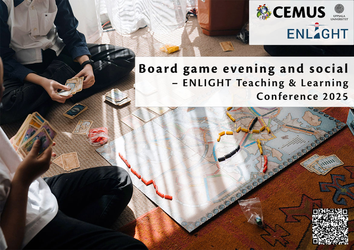 After a full conference day you are welcome to CEMUS for a relaxing evening with music, drinks, lighter food option, fun board games and conversations. The Centre for Environment and Development, CEMUS, has a long history using games as a fun and important pedagogical tool, and some students have even developed their own games as part of CEMUS courses. This event is organized in collaboration with Oleksandra Halaim, Lecturer at the Centre for Health and Sustainability, which has organized ENLIGHT courses focusing on board game, more in this article Changing the way humans tackle problems. The evening will also include board games from conference participants from ENLIGHT universities all over Europe.
