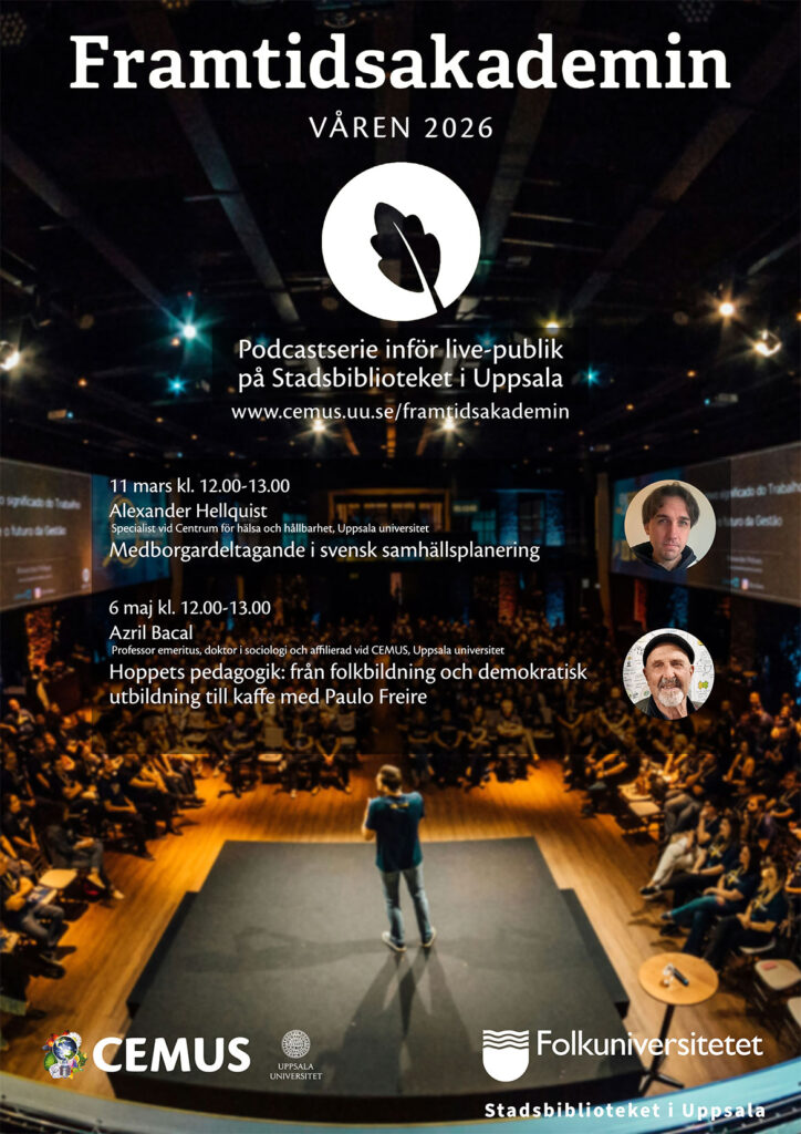 Framtidsakademin är ett samarbete mellan CEMUS, Folkuniversitetet i Uppsala och Stadsbiblioteket i Uppsala.